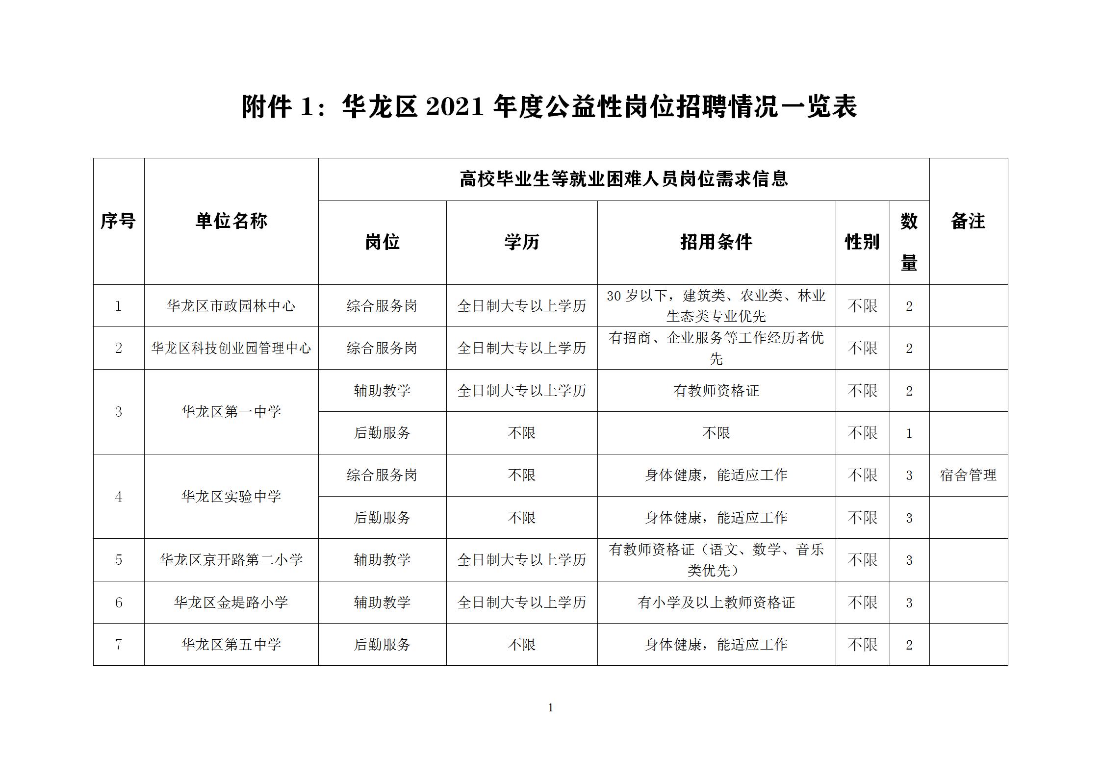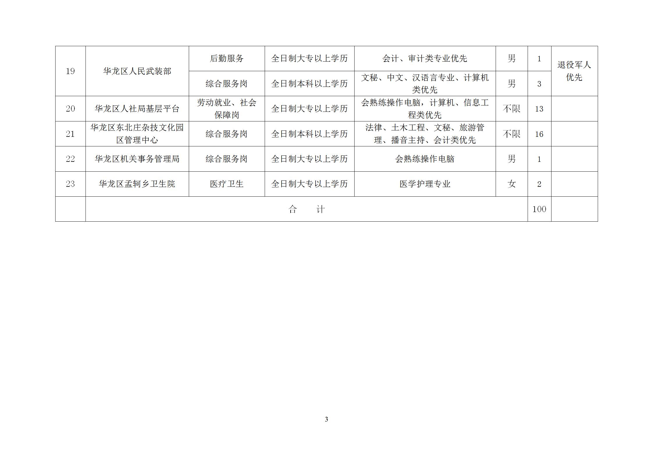 (一)公益性崗位人員招聘100名。具體招聘崗位和名額詳見附件1。