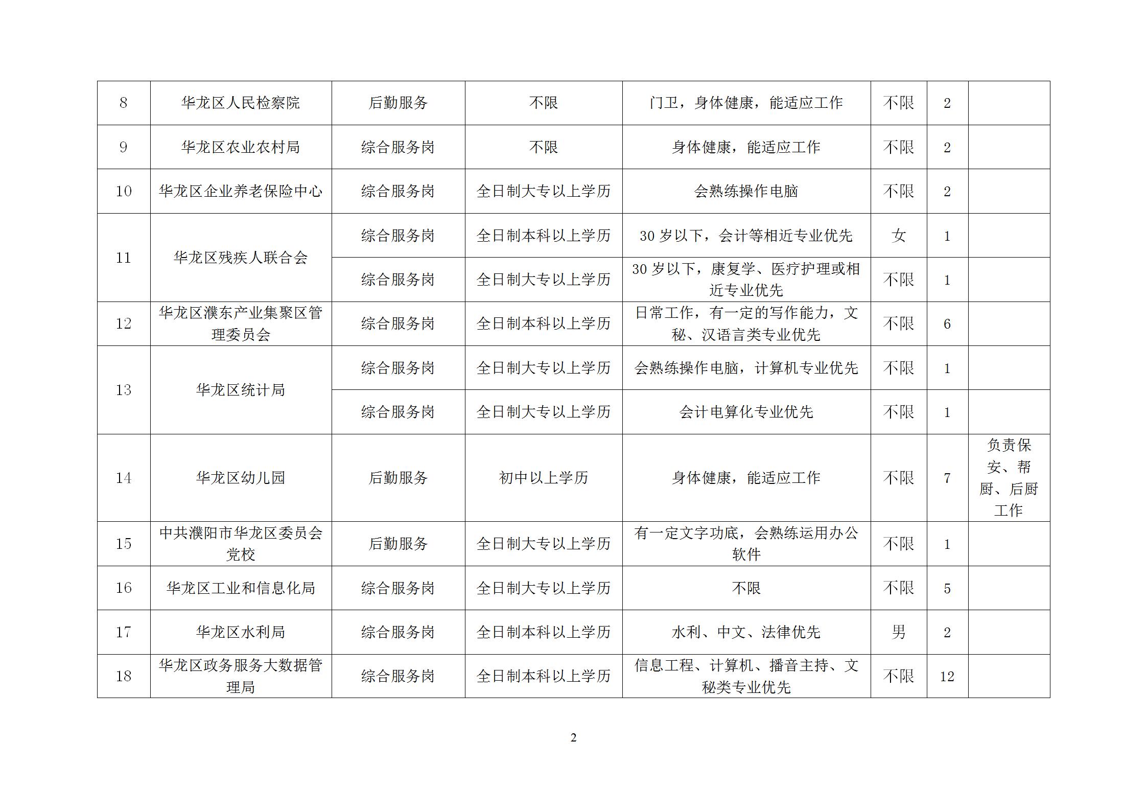 華龍區范圍內,持有《就業創業證》、已進行失業登記,并經我區認定的符合《河南省公益性崗位管理辦法》規定的就業困難人員,且滿足以下條件: