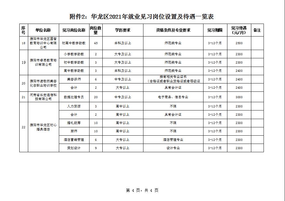 (二)就業見習崗位人員招聘300名。具體招聘崗位和名額詳見附件2。