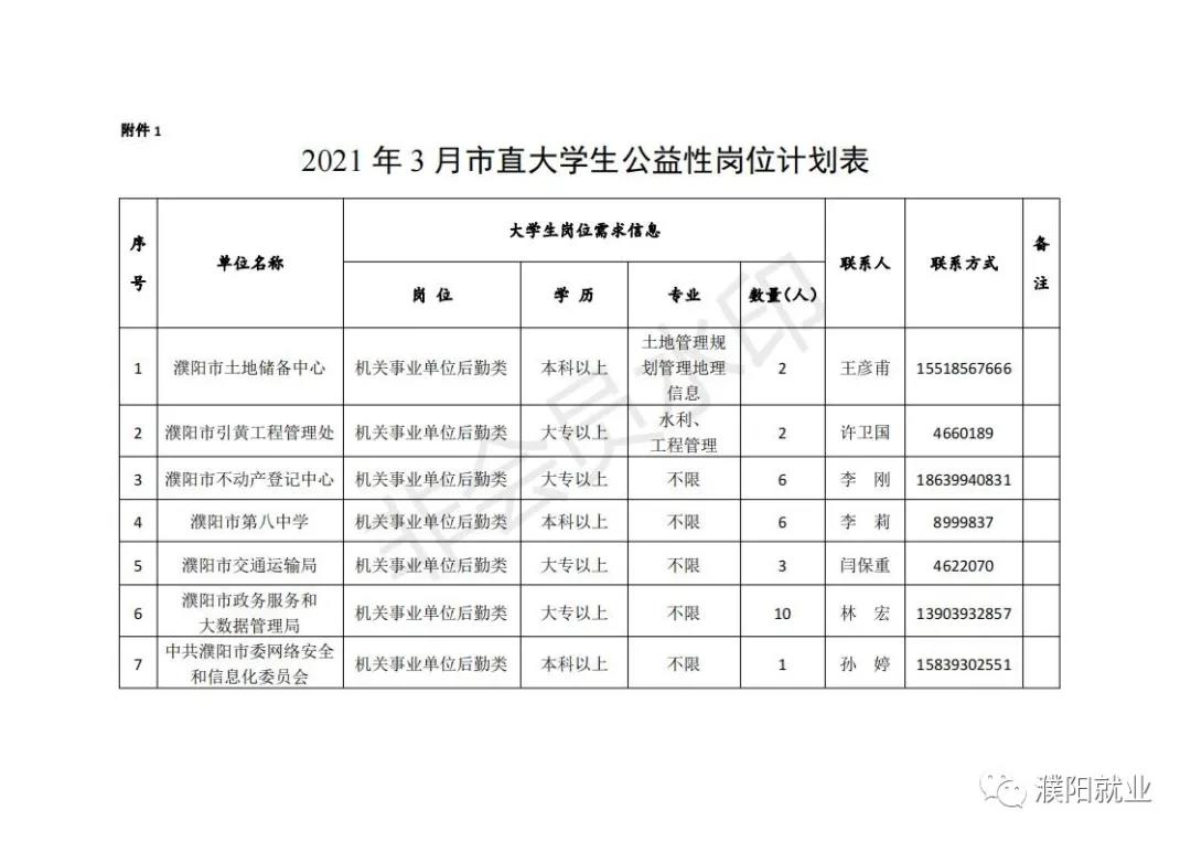 1、見附件1《2021年3月市直大學生公益性崗位計劃表》